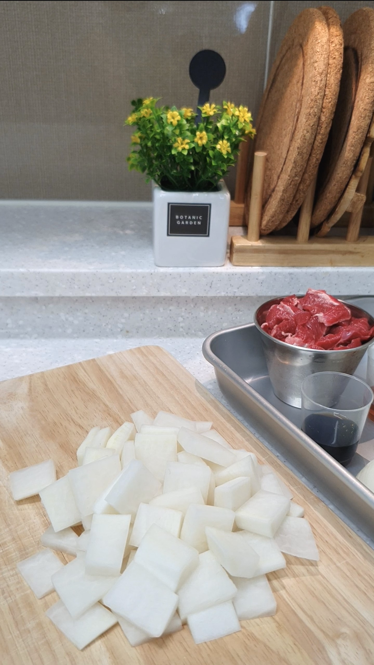 무는 사각으로 썰어주고,