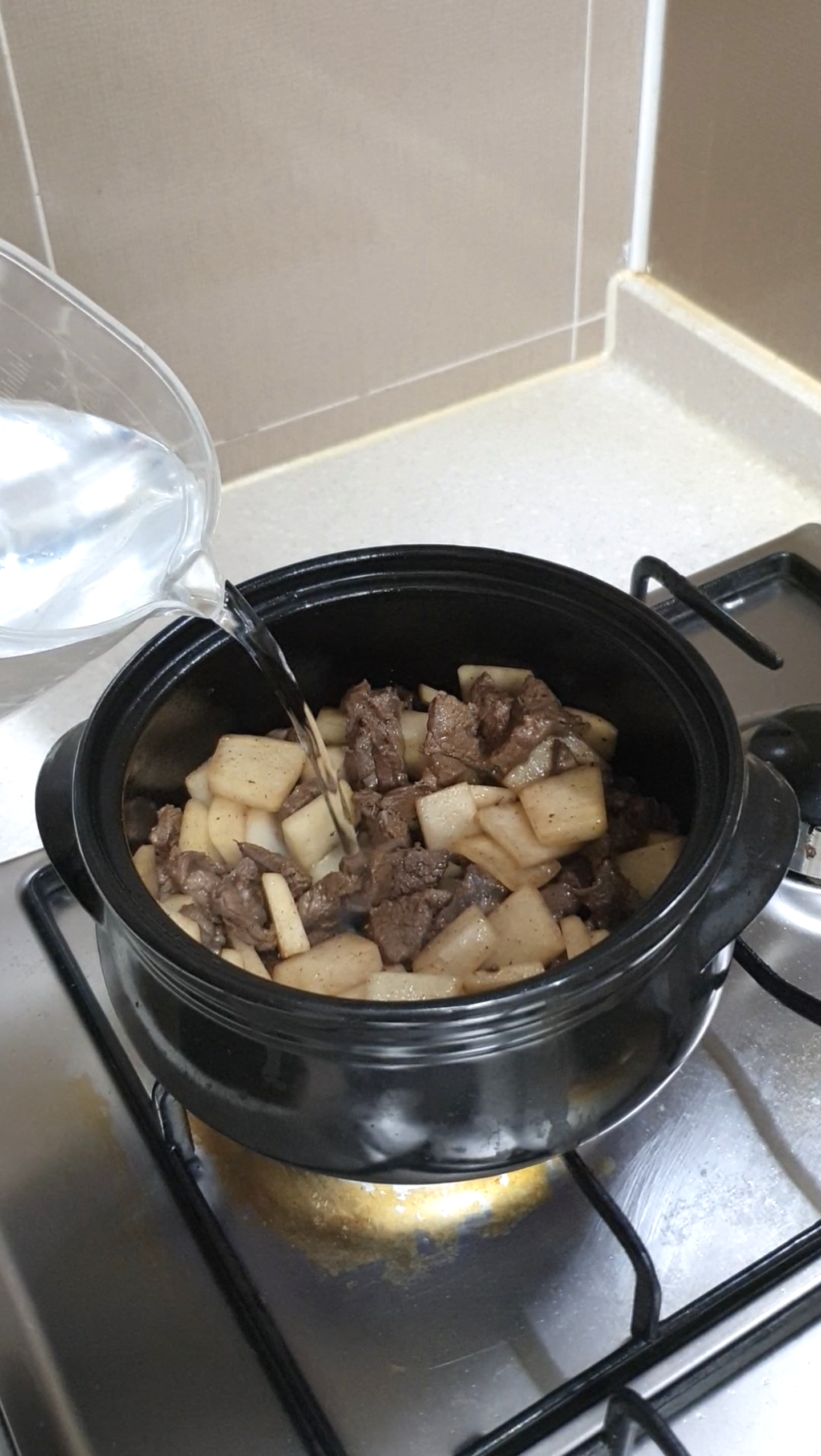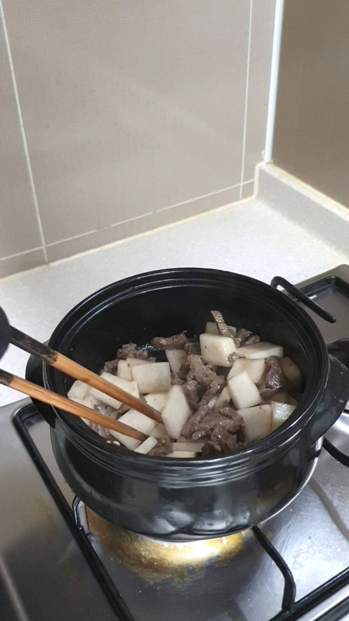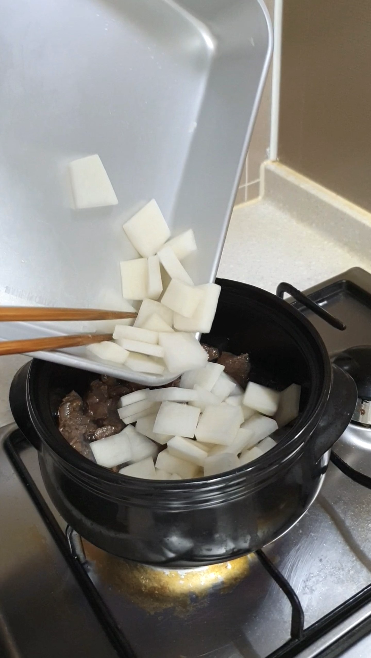 소고기가 익으면 썰어둔 무를 넣고 충분히 볶아주세요