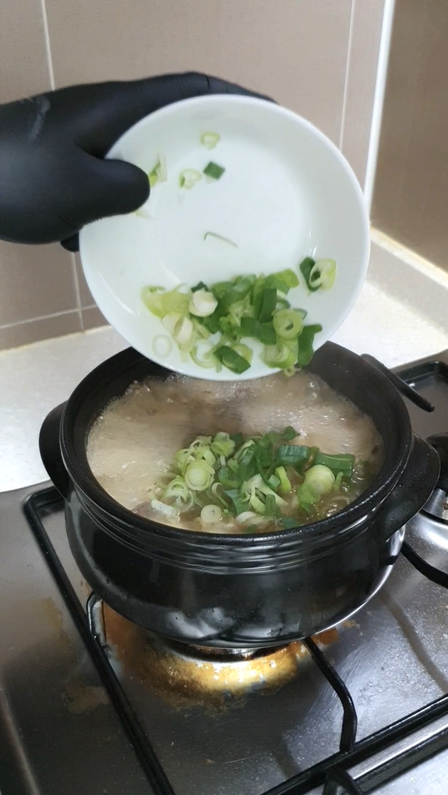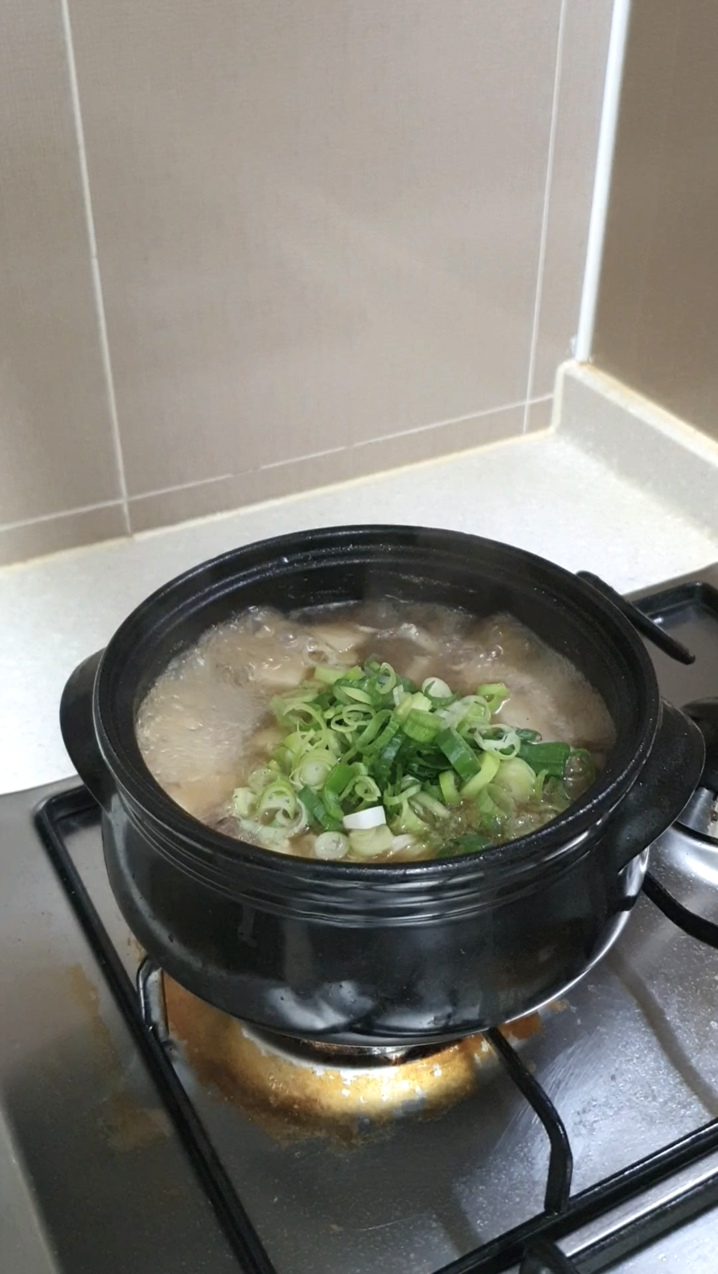 썰어둔 대파를 넣고 한소끔 끓여 마무리합니다