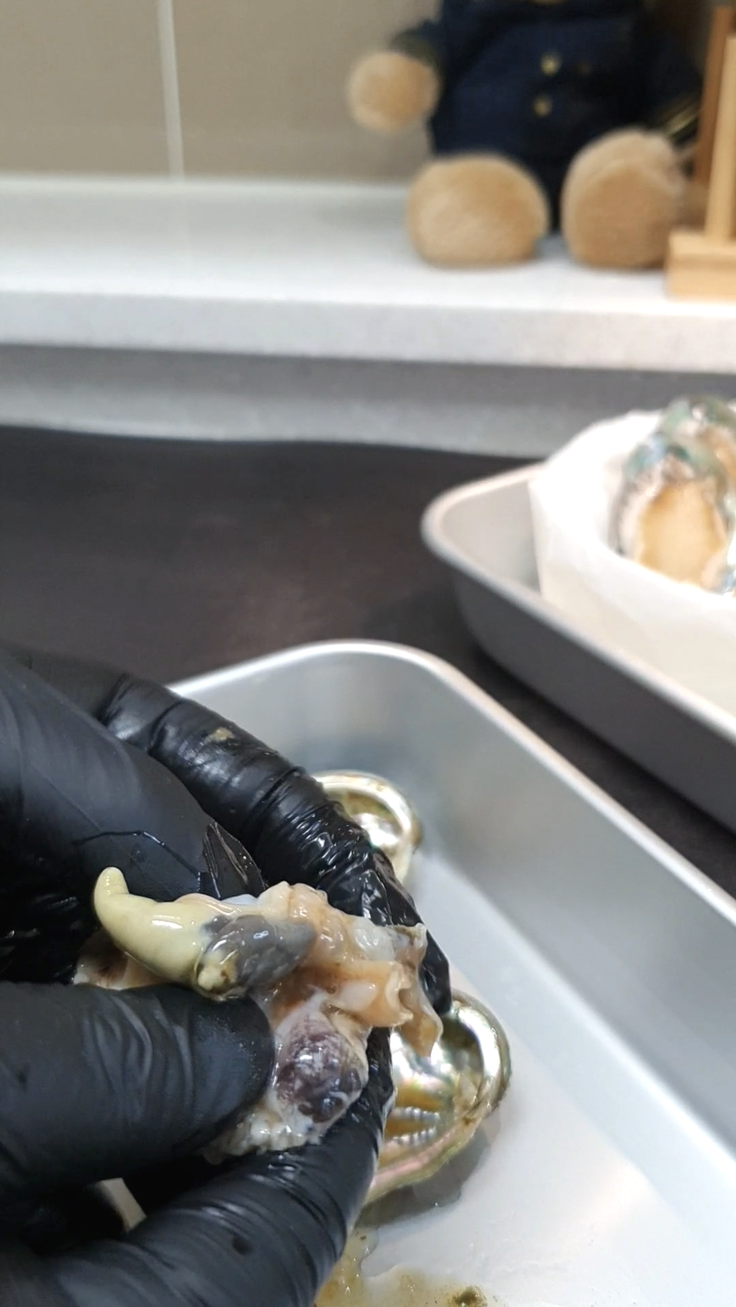 전복 내장을 떼어내 주고